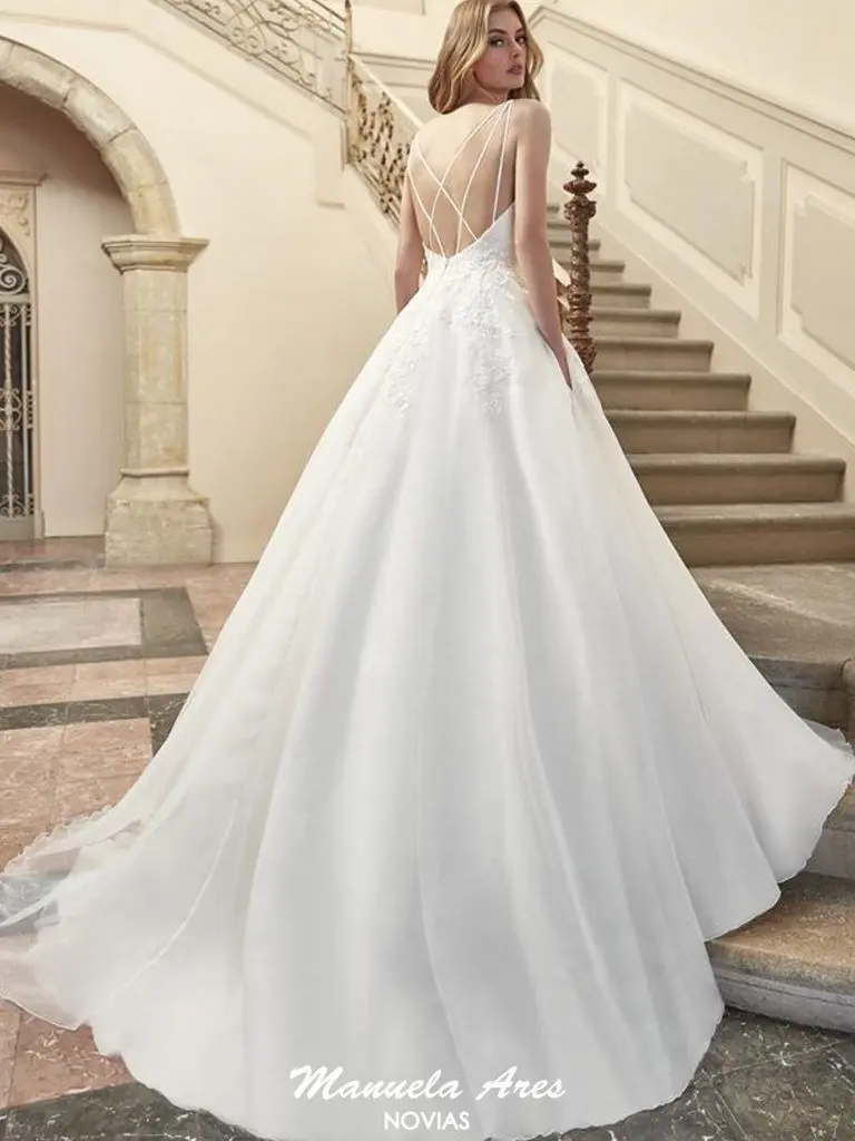 Vestido de novia princesa de tirantes con espalda cruzada.