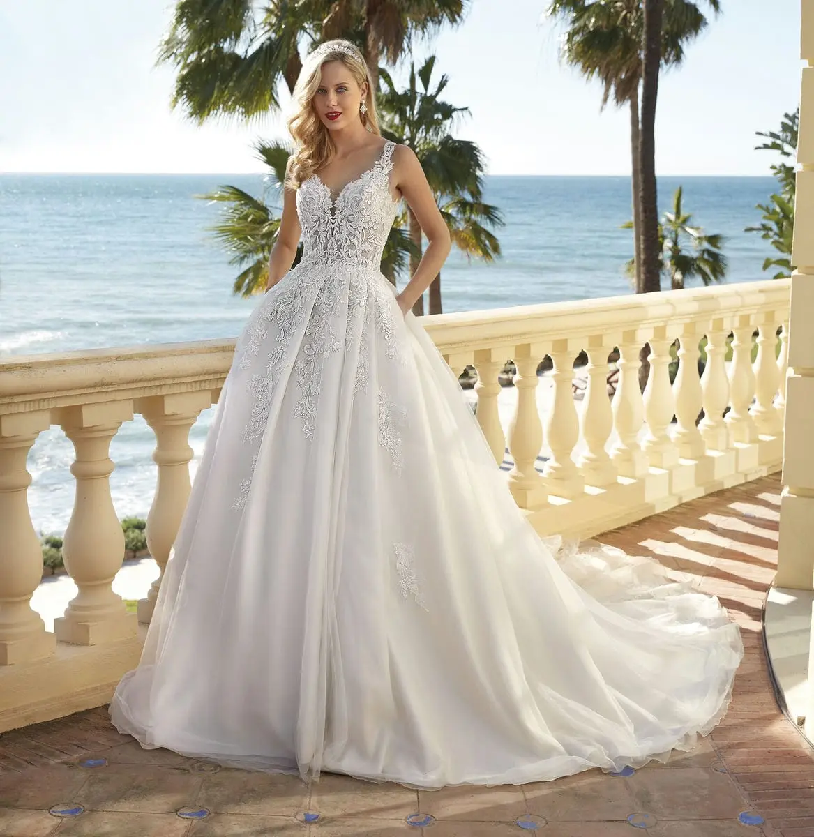 El estilo 1226 encarna la fusión perfecta de elementos clásicos y sexys. Exquisito e intrincado encaje de pedrería sobre tul adorna el corpiño con escote en forma de corazón con tirantes caprichosos y una voluminosa falda plisada de corte A con una seductora abertura hasta el muslo.
